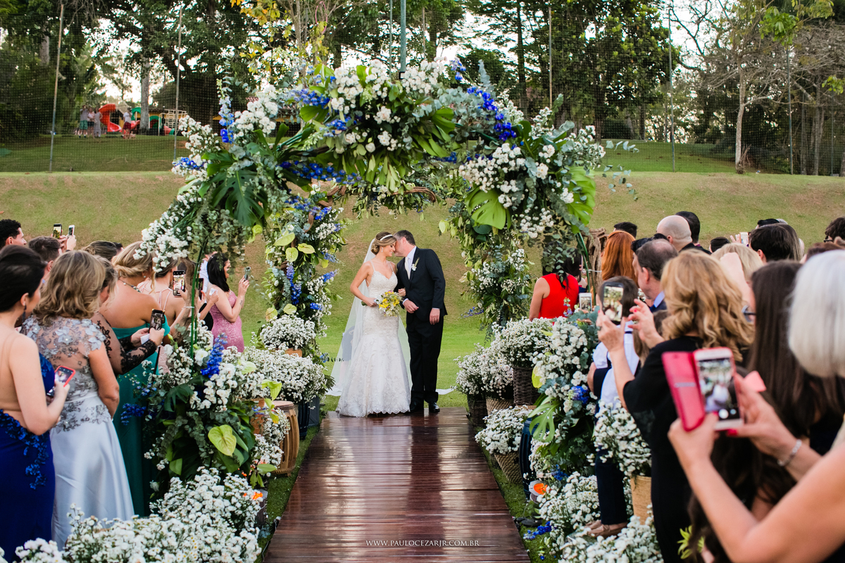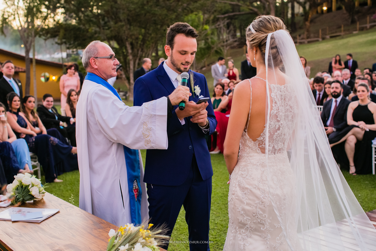 O casamento foi incrível do começo ao fim, mas o que tomou conta mesmo foi a emoção na entrada da Paula, os olhos do Gui lacrimejando, era nítido a felicidade deles vendo a realização de um sonho.